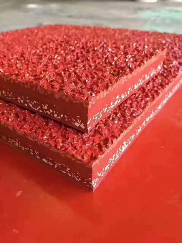 透气型塑胶跑道又称渗水型跑道,因其具有良好的透气透水性能而被多雨水地区广泛的采纳。透气型塑胶跑道即具有一般跑道的优点和性能,又成本低廉,成为目前塑胶跑道面层的主流产品之一。我公司生产的透气型塑胶跑道一般使用专门的摊铺机摊铺,平整度得到有效控制,再加上面层使用专门的喷涂机用喷涂,聚氨酯胶水的含量又很高,所以面层与其他类型跑道相比,牢度比较大,使用期间基本不需要进行维护,大大降低维护成本。